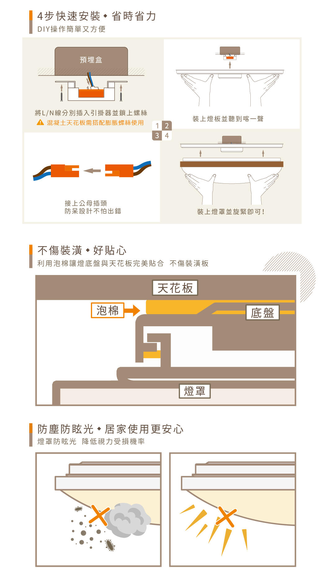 材 質 : PC擴散罩、鐵材烤白漆、PC防觸電罩、ABS邊框