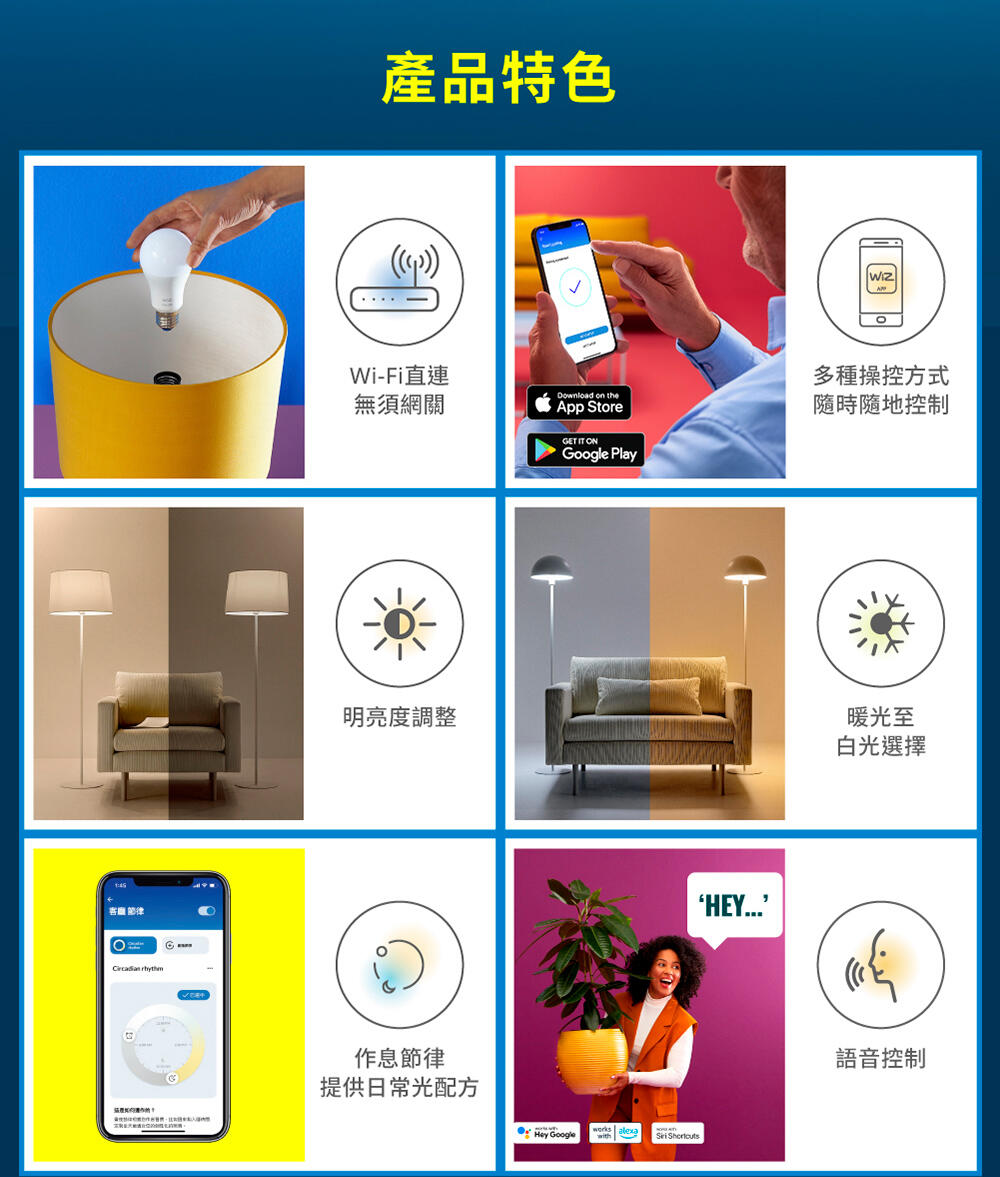 • 自訂燈光場景、明亮度調整、晝夜節律