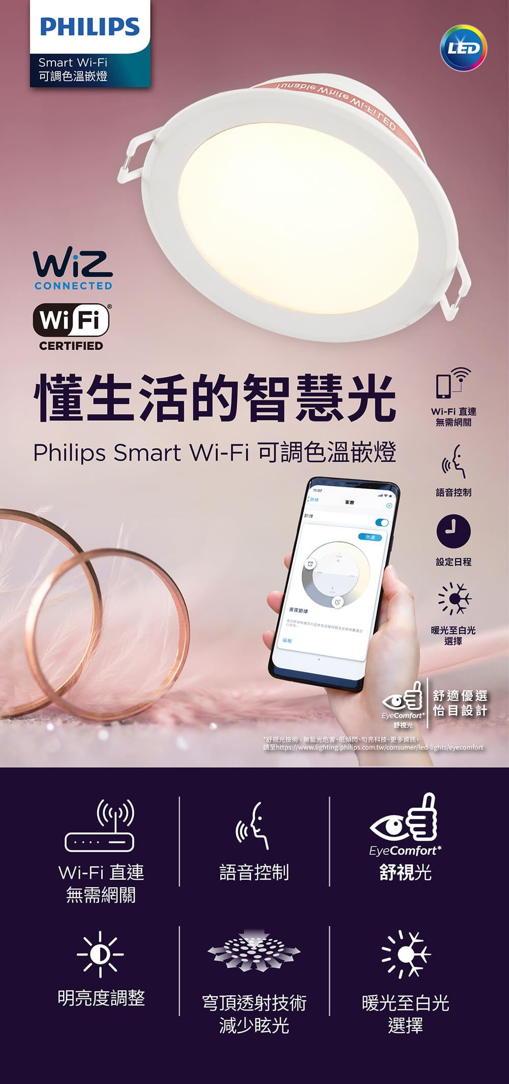 Philips 飛利浦 Wi-Fi WiZ 智慧照明 15CM 可調色溫嵌燈(PW003)