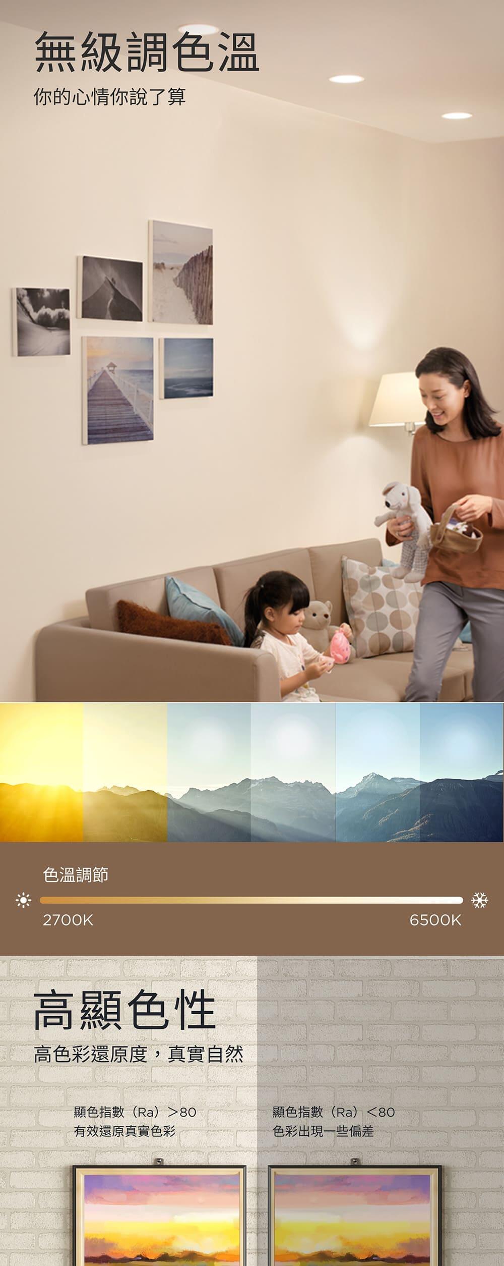 • 無段調節 2700-6500K(暖黃光到冷白光)