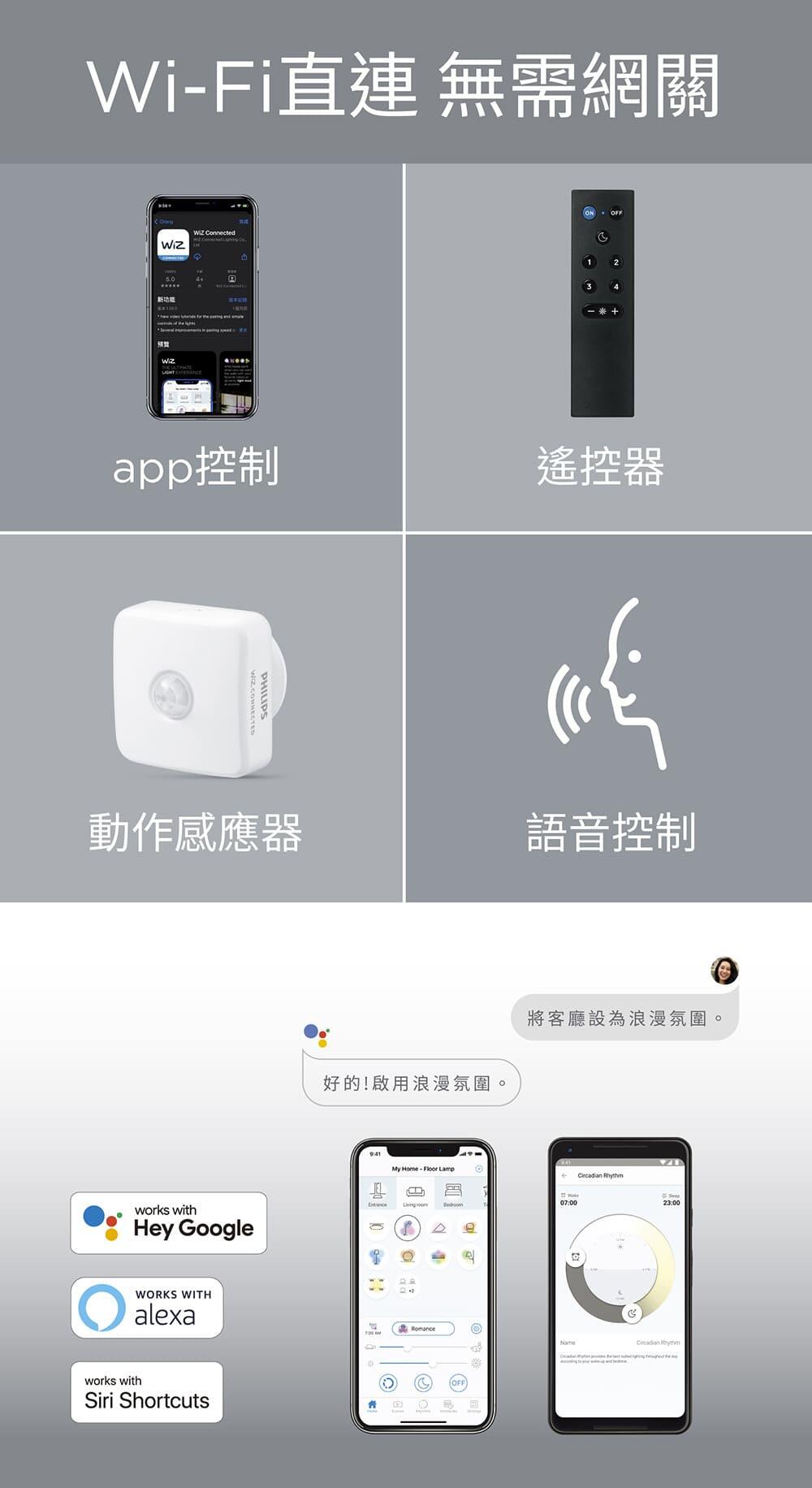 • 適用所有WiZ 燈泡和燈具