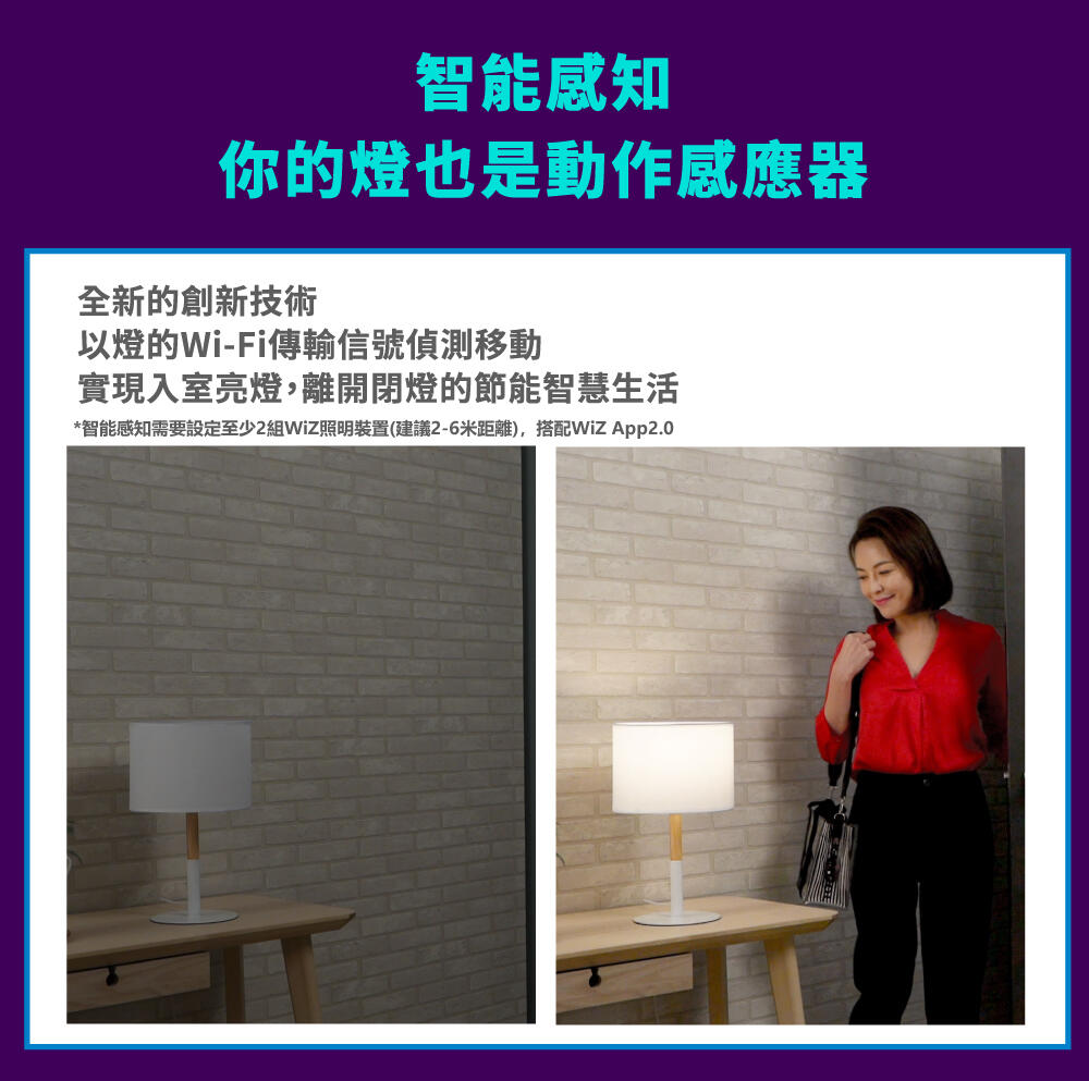• 透過WIZ APP 開啟智慧照明,多種預設場景與記憶功能,訂製你的專屬燈效